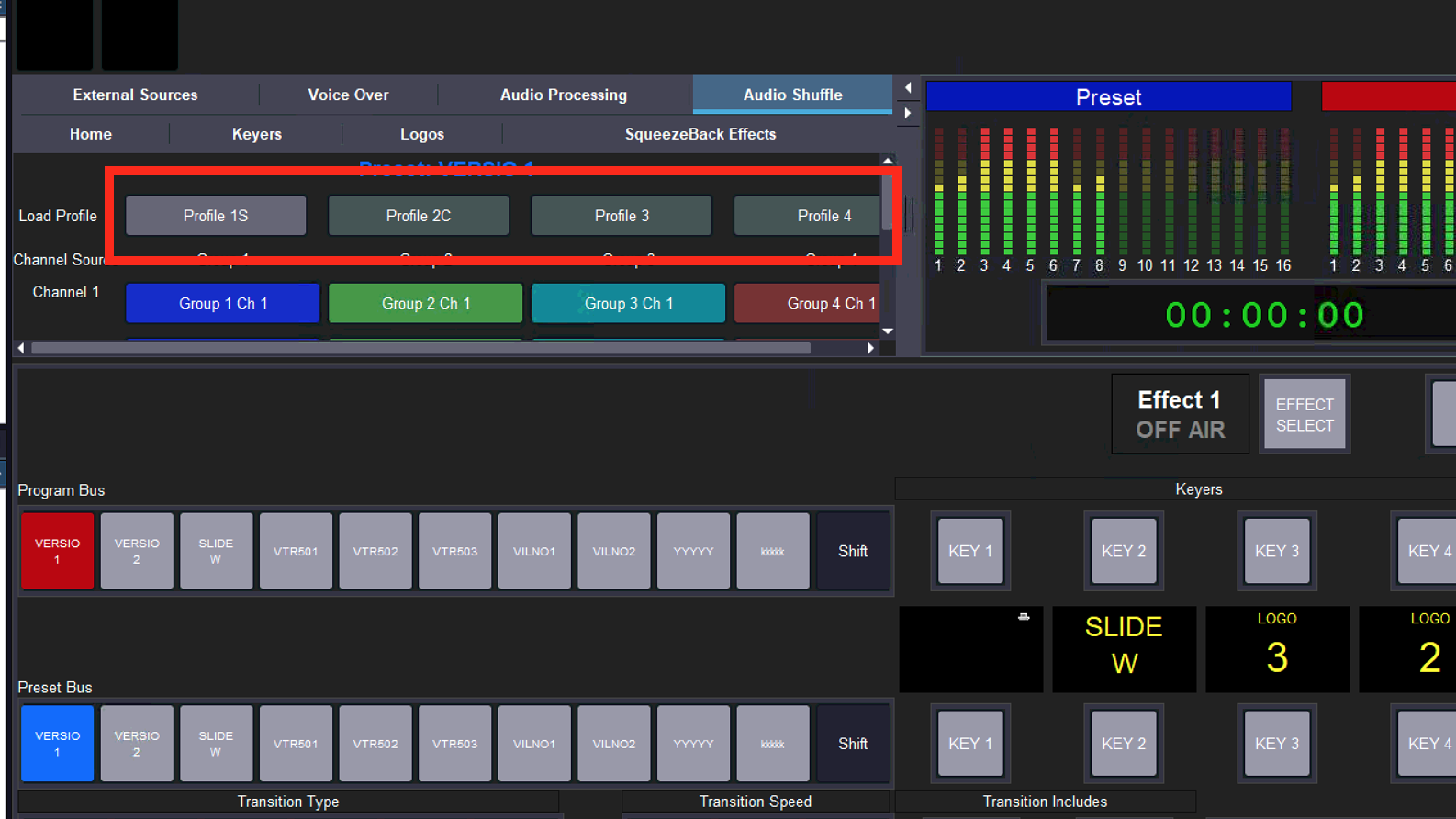 Recall is performed in the On-Air control, from either the Audio Processing or Audio Shuffle tab, you can load the desired preset. This will recall it to the selected preset crosspoint. You then need to TAKE the background to air to have it take effect.
