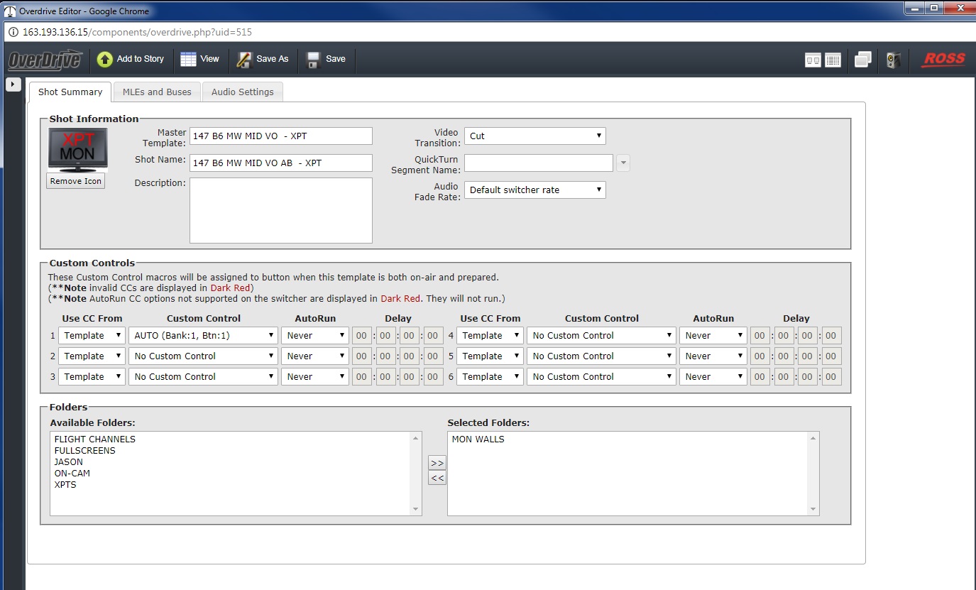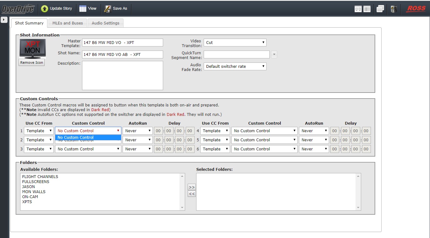 Attached are two screen grabs, the first showing the shot summary before going into a script and the second after going into script with no available custom controls to select.