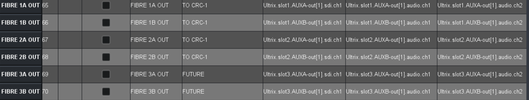 Hello, we have a 5RU Ultrix. That is already equipped with IO Cards that have Fiber SFPs for the Aux outputs. My question is how do I assign that as an output and then send a signal down that output?