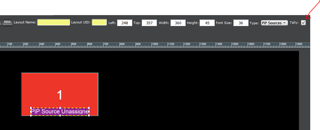 Tallyman can send TSL version 3, 4or 5 to the Multiviewer for tally as well as for the UMD mnemonic. In the Layout editor set your UMD to tally by selecting the checkbox. Unfortunately the Ultriscape does not accept GVG native for UMD mnemonics.