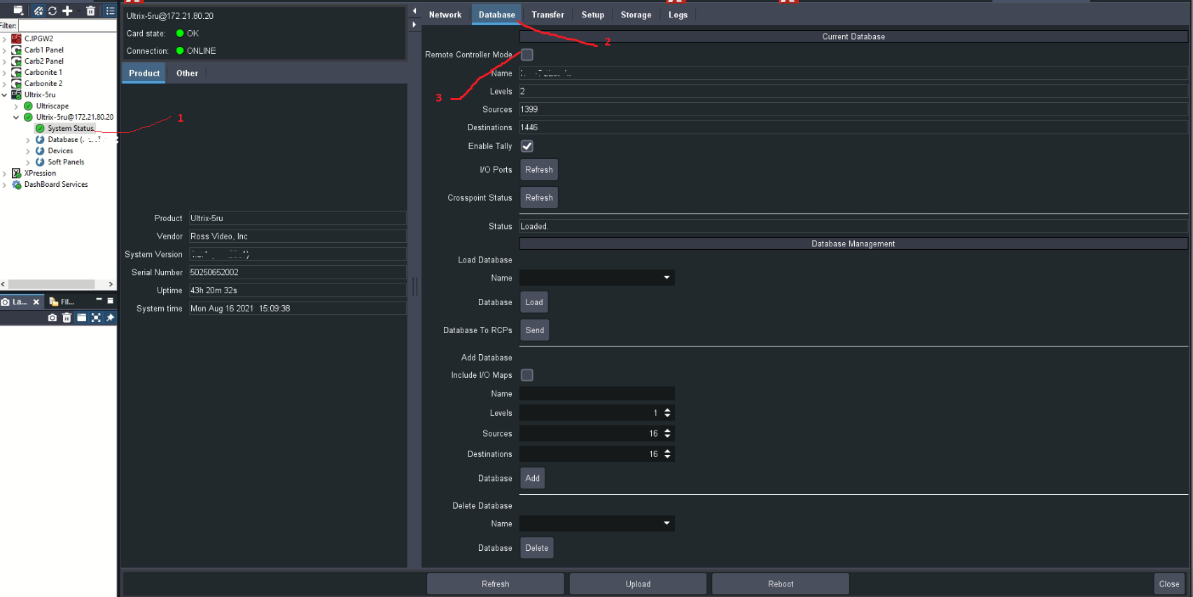 I would start with checking the "Remote controller" mode, which (unless you have a separate controller) should be un-checked. Please go to Ultrix-->System Status --> Database and be sure that "Remote Controller Mode" is not Checked.