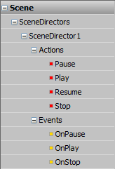 Under Events: OnPause If you have something above that says pause, then visual logic will do something, like change a material face. OnPlay, if the scene is playing, this can trigger another event. OnStop is pretty much the same as the two examples above.