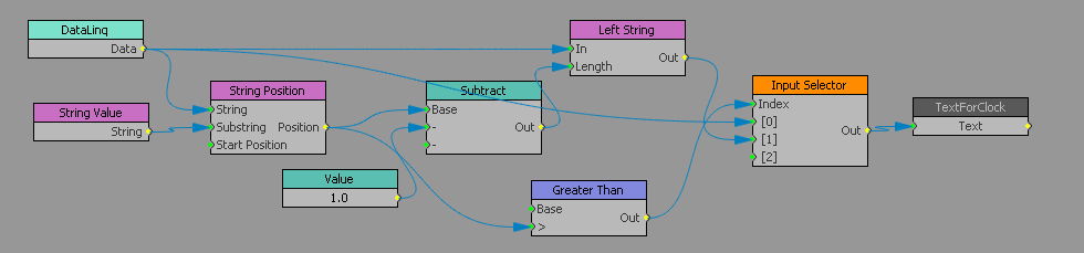 The Datalinq block is your Daktronics datalinq, the string literal value is "." (I'm assuming your time comes across something like 43.7)