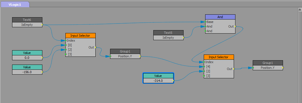 Are you comfortable with scripting? This might be easier to accomplish using scripting instead of visual logic. Try putting this script on the "onOnline" and "onPreviewRender" - be sure to change the values after .PosY to where you want the text to show up