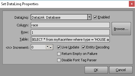 But, really there are hundreds of races happening, and it's not practical to create a DataLinq for every race. Instead, I want the XPression scene to have combo boxes for the user to select select the the race type (HOUSE, SENATE, GOVERNOR, PRESIDENT), the state ('PA', 'NY', etc), and the district number.