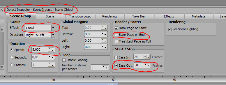 NOTE: You MUST have at least two scenes for a logo hold at the end: crawl text in scene1 and logo in scene2. Put spaces preceding the logo in scene2 so it sits in the middle of the screen.