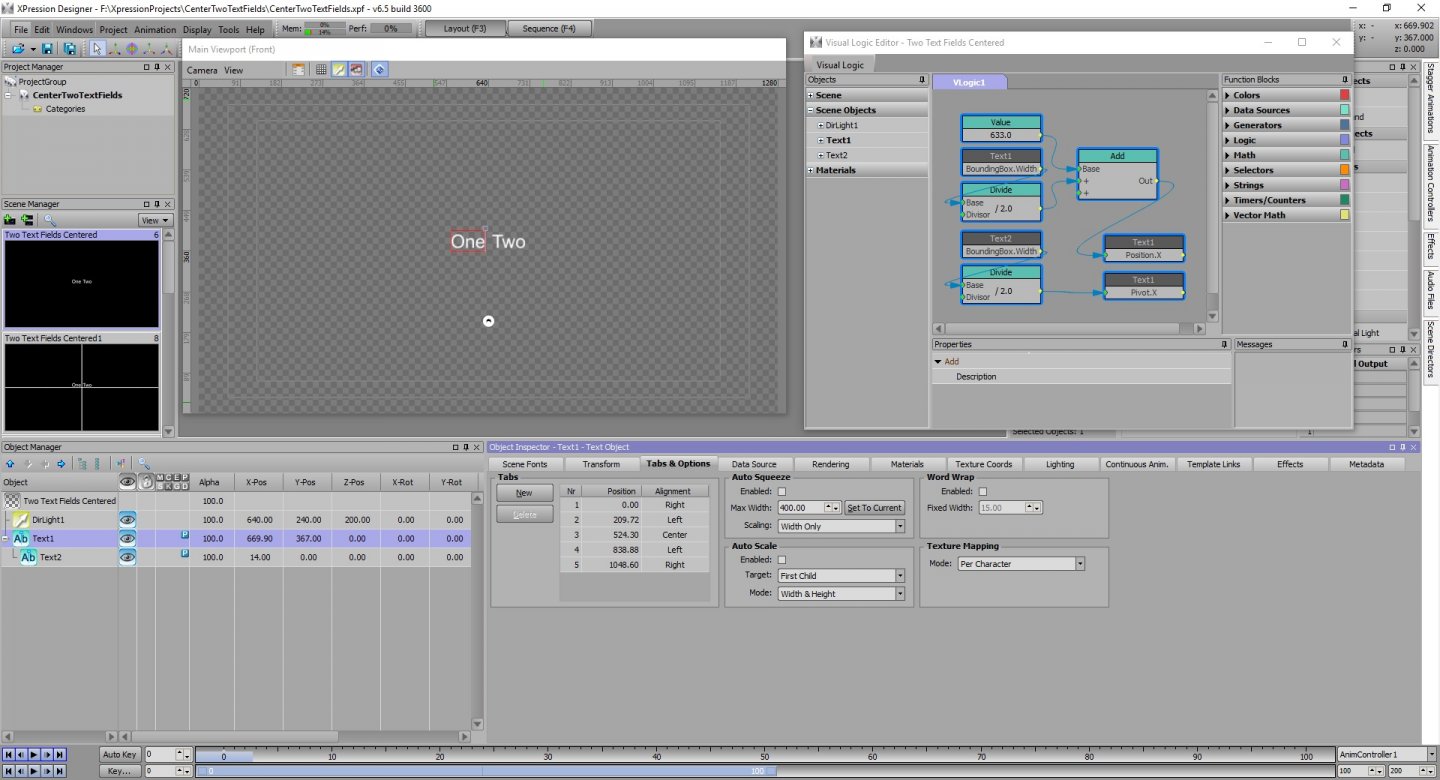 Create two text fields. Right justify the first. Left justify the second. Make the second a child of the first. Offset them to create the space between (assuming they are different words.) and use the attached visual logic, tweaking the value to finish your space.