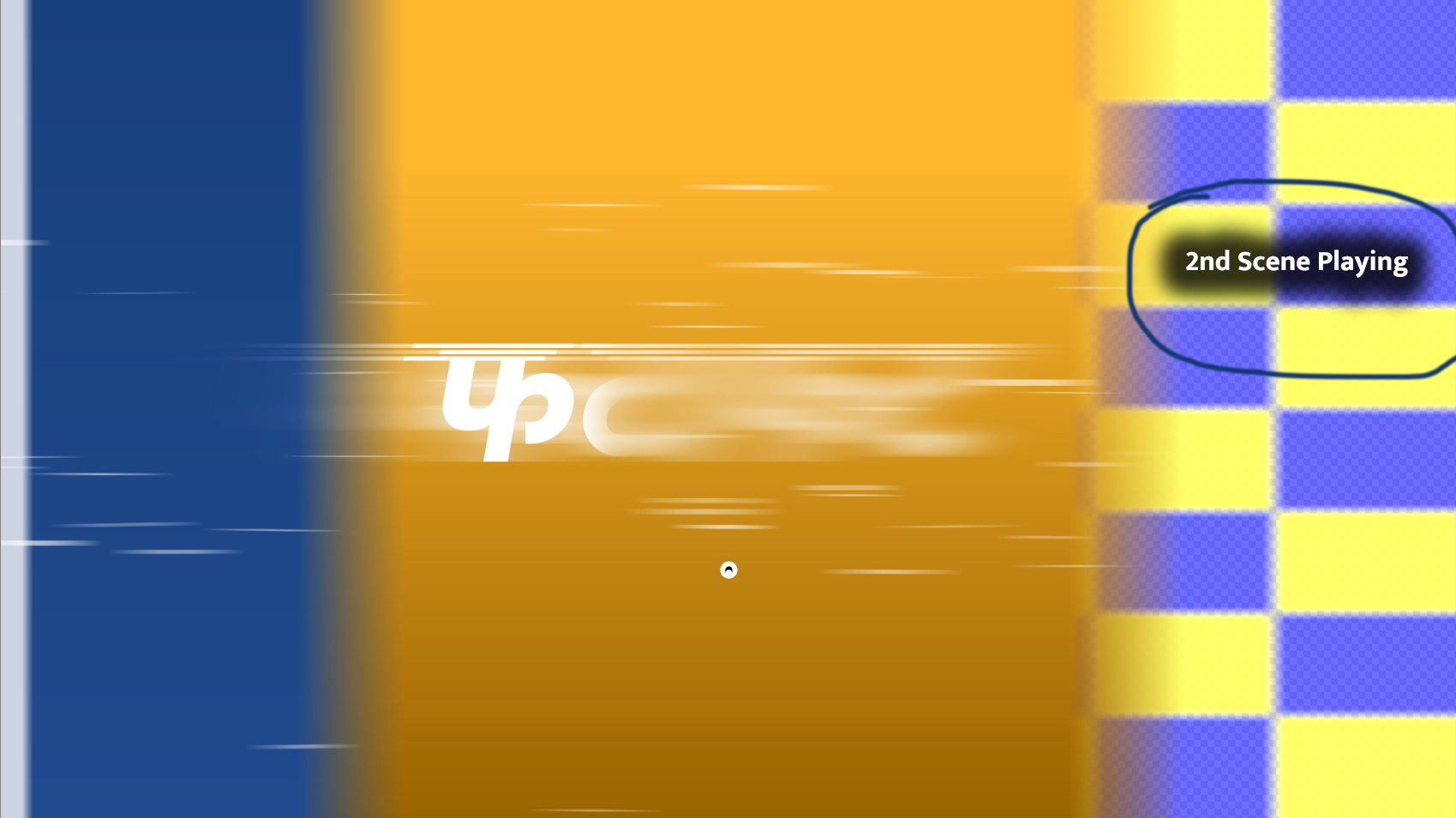 In this case I have made a Scene Director called SD_Transition which just moves the group with the colored quads from right to left. At the same time, I'm also using a mask, which is positioned under the colored quads which moves together with the colored quads to mask the contents of the first scene. The reason why I'm doing this is because of the way how transition logic works.