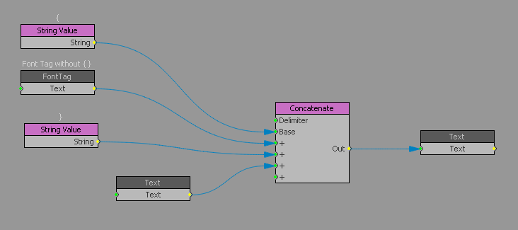 I want to assign font tags with user input controls and a radio button global list. I've built a scene with text fields body1 through body8, size1 through size8, and body1output through body8output. With visual logic, I concatenated size1 and body1 to body1output and so on. In layout mode with the size text fields as static text, I can type in the font tag and the concatenated font tag with text feeds as expected to the output field in the font size I want.