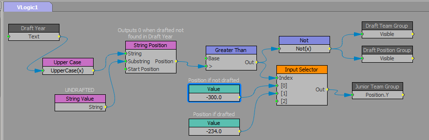 I'm not sure I understand what you are trying to compare in the string compare... Are you trying to check if the draft year is less than a specific year in the String Value block?