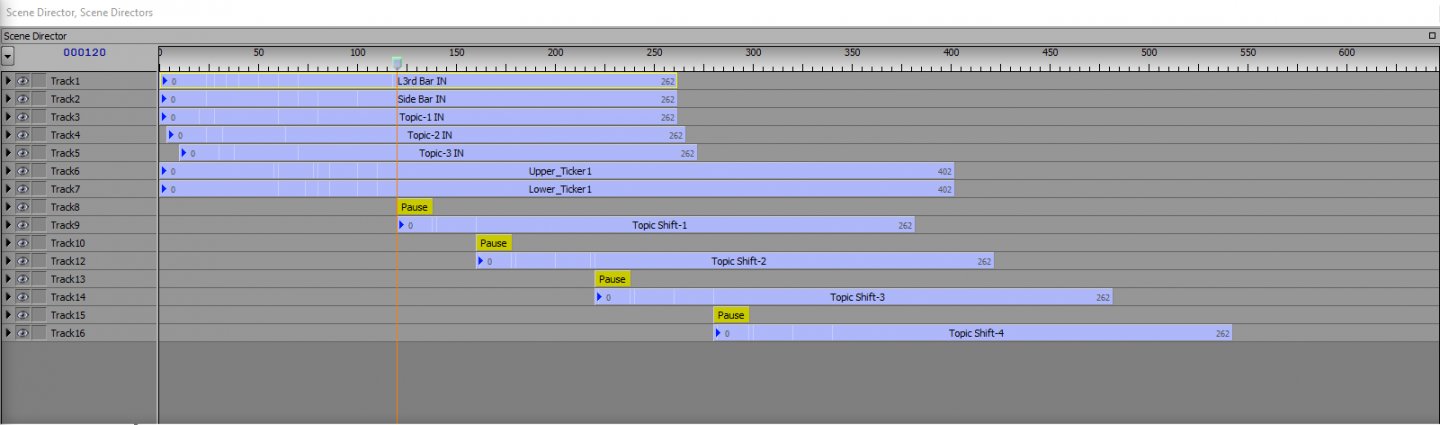 Presently, I have the topics on the sidebar advance with pause events. The primary title for the l3rd advances with them too.