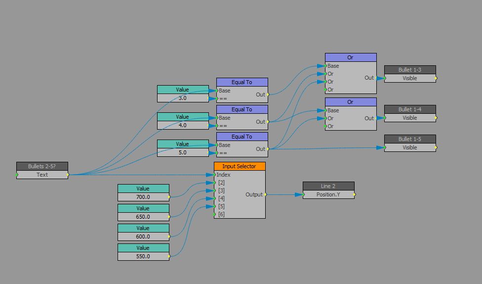 Bullets 2-5 text is just a text object the operator can enter a value into in order to drive the number of bullets visible in the scene. This also drives the Y position of the Line-2 text.