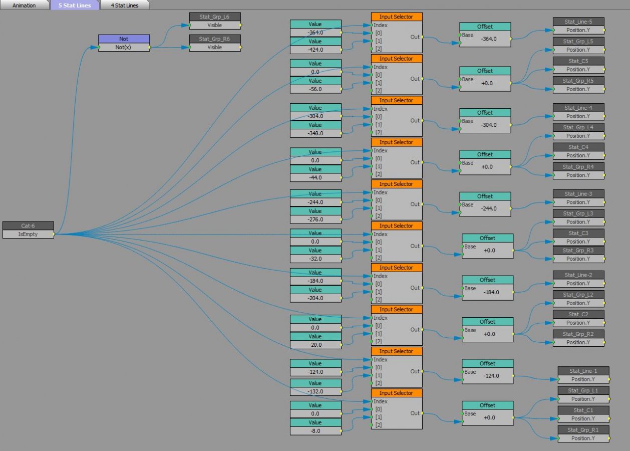 The VL would be, for example Bullet Text 6 [is empty] -> NOT -> Bullet Point 6 [visible] You could further refine this so that when a line of text is empty, the other lines of text you do see move in Y so as to better fill the negative space of the screen. I did that recently with a lower 1/2 graphic for sport stats. Here's a look at the logic tree for that: