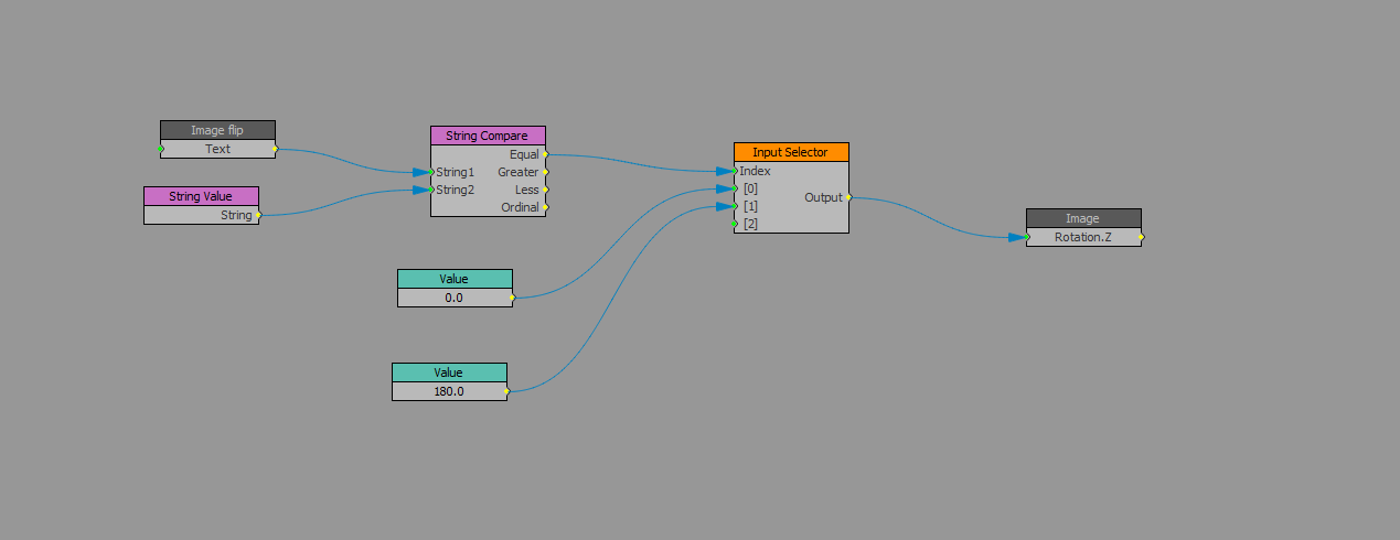 Note, that a rotation of 180 on the Z axis will make the image go upside down. This is not the same as a rotation of 180 on the Y axis, as that will make the image flipped left to right. If that is what you actually want (it's what your original post asks for), you can rotate 180 on the Y axis, but you need to enable the "double sided" checkbox on the material that you have on the quad, otherwise the reverse side of the material will be unlit/black.