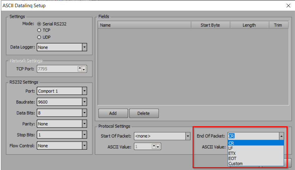 And then configure the ascii datalinq source to look for minutes in bytes 1&2, seconds in bytes 3&4, and shot clock in bytes 5&6.