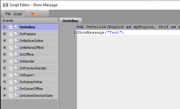 - Scene scripts - available to any script in a scene (OnOnline, etc.)
