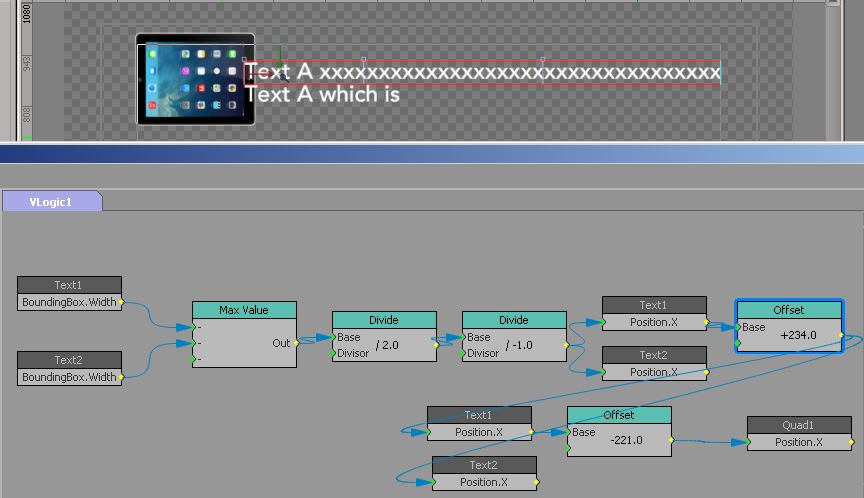 Please help. I have 2 rows of text left justified to a quad and i want the whole group to center horizontally on x. I have accomplished this using the visual logic below, but if I turn on auto squeeze, it no longer works properly. The text does not squeeze...and it just keeps adjusting the x position. I think I have to tell it if it reaches a certain width to stop changing the position, but I am not really sure. Any ideas? Thanks so much for your help!