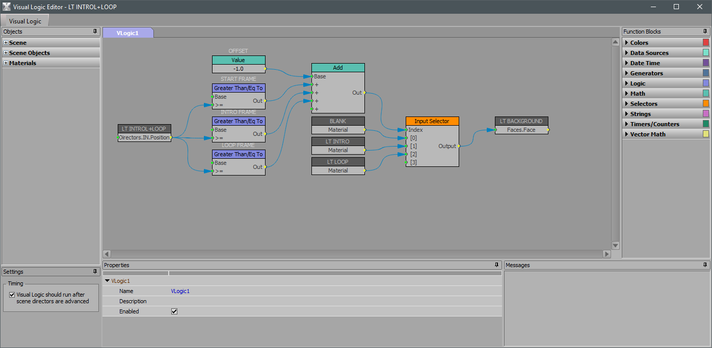 Please let me know how to start the scene with intro background, continue with the loop (same clip or different) using B2B and transition logic too.