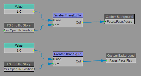 Can you control the playout of clips dropped into a scene from Clip Store through Visual Logic? We’re working on a scene that will allow producers to add font to a pre-rendered background animation. The animations will need to be loaded into Clip Store in order to prevent adding new materials to the project each time, as well as to help manage these clips among our station group. Animations are dropped into a background element in the scene. I’m trying to use Visual Logic to pause & play the face material in background based on the keyframe position on a scene director. See attached image.