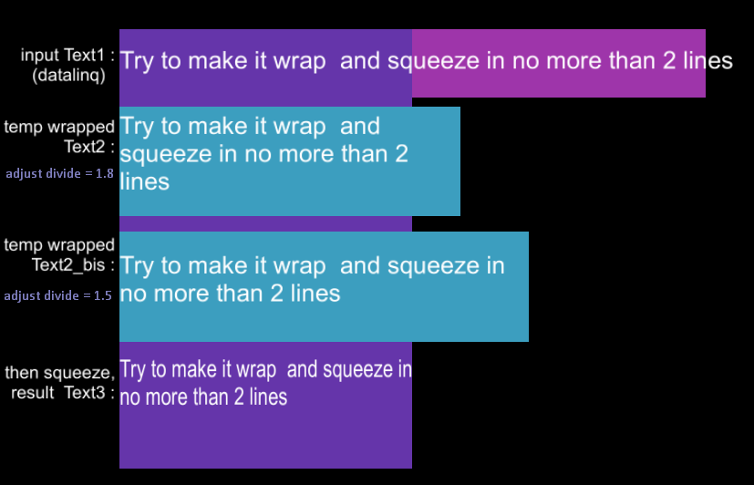 I have a significant amount of visual logic running, and as a result, this script in the old thread doesn't work for (in part because the context of the text field I need to wrap is dynamically set via visual logic). I have tried to replicate the script, or my own variant of it in visual logic, but have encountered other issues, such as using the logic block to find a " " character to split lines doesn't return correctly if the start point if after the last space character. Also, the concatenate block does not allow me to add a CR/LF code into the text, or at least I haven't figured out how.