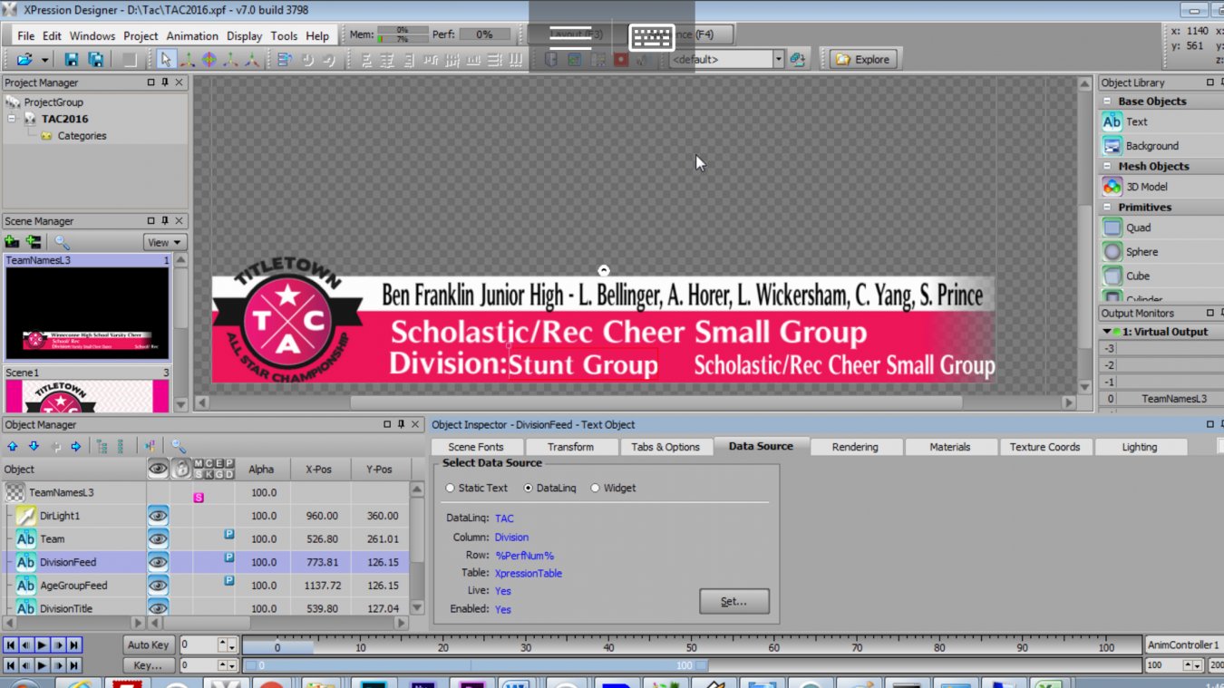 I'm using an AODDB datalinq to populate text boxes from a performance schedule for a show we have coming up. What I would like to do is have the text boxes populated by the performance row based on take id. So Take ID would pull Perf Number 1 row data. I have done %relid% and Datalink Keys before with rss/xml feeds but never have done it with an excel sheet. Has anyone tried doing it this way before? I have tried several things but it has not been working.