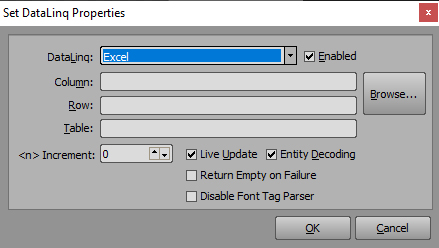 I've connected a XLS file trough datalink with a couple of fields: