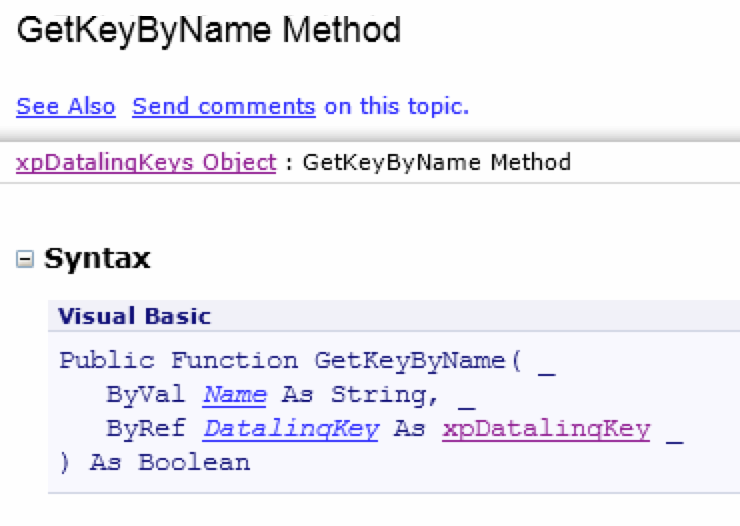 Is this some v9 bug or am I doing something wrong? It almost looks like the Datalinq keys returned from the function are a copy (ie. "ByVal"), even though the SDK docs say "ByRef", implying that operations (like assigning a value to a key) should be performed on the original objects. Any ideas on this?