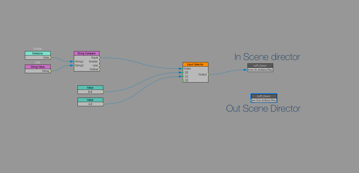 The other important thing is that you want to make sure that when the state changes and you want to trigger the other Scene Director, you have to make sure that the other Scene Director is stopped. So if the IN-animation has played and next you want to trigger the OUT-animation, you have to make sure that you stop (or maybe pause works also) the animation.