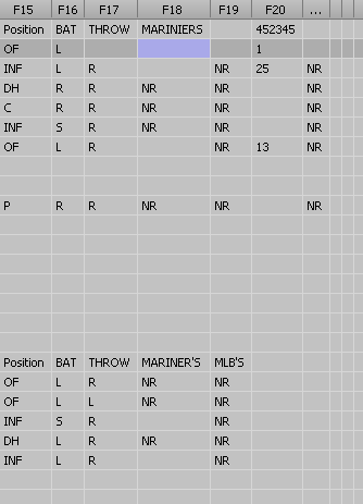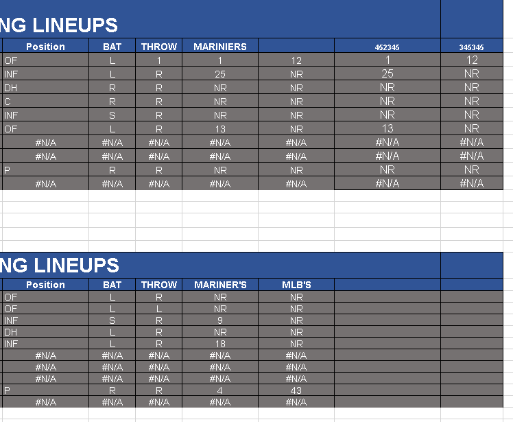 Here is the Excel sheet that has the numbers and text under "MARINIERS"