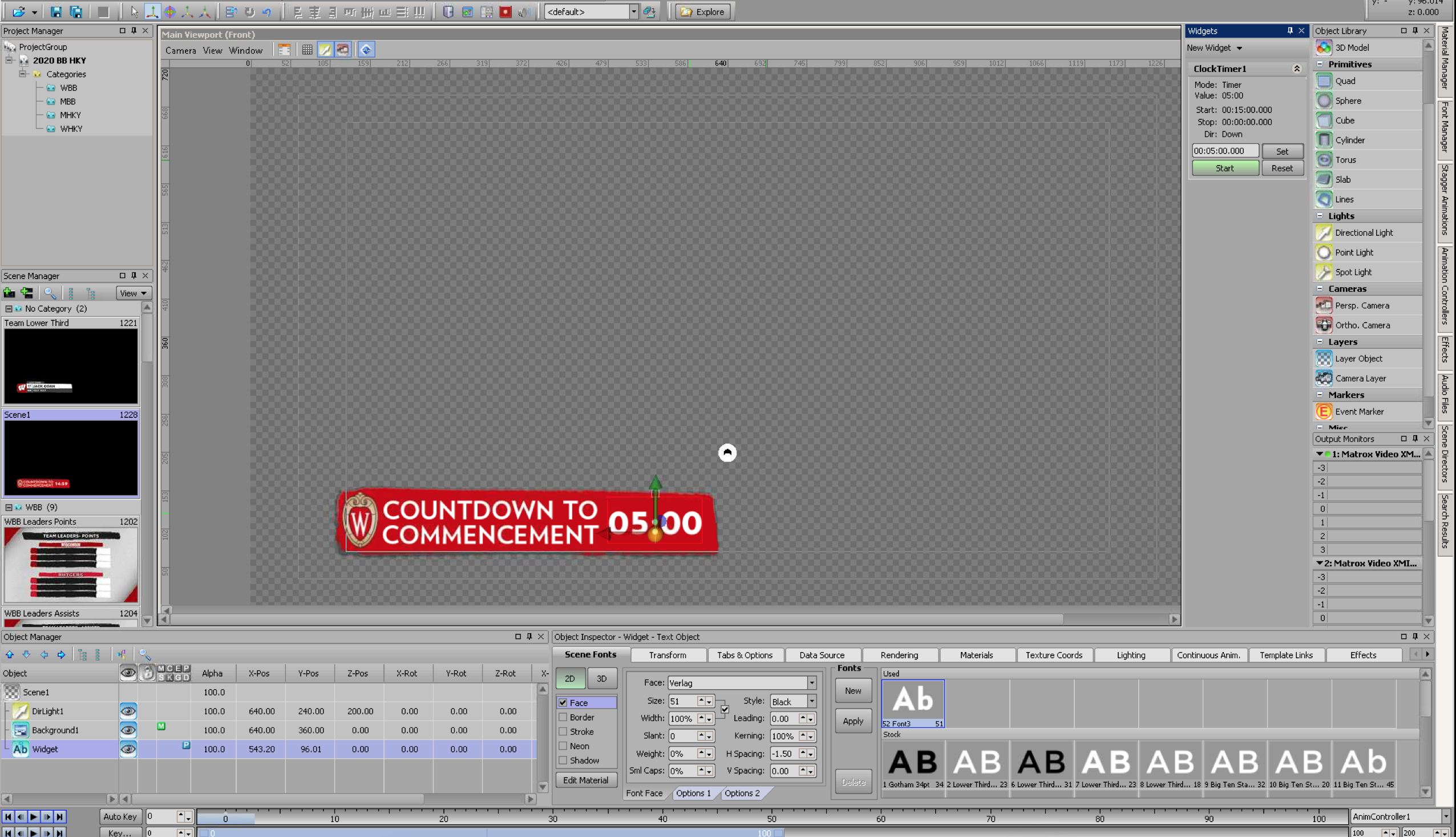 Only way I found to make this work is to keep Text1 visible, but assign it a font with a 0% alpha face. XPression will still render the text, so the widget countdown will apply to the object, but it won't be visible in your scene.