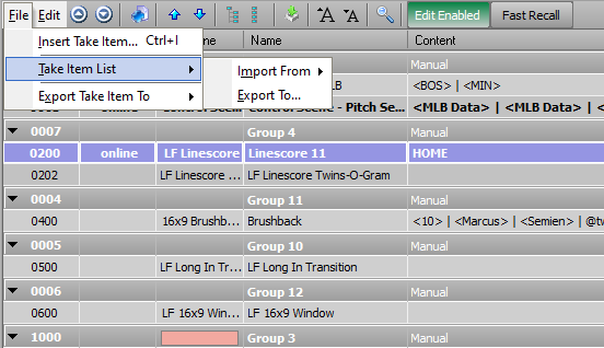 Then you will see in Red screen shot the import from as part of the small file, so when you get to your other machine, you do that step and load the XML file and you are in business. This is how ESPN executes most all of its college sports shows. They have XMLs that have 4,000-6,000 take items inside of it. Then the location will load their projects and then load the XML.