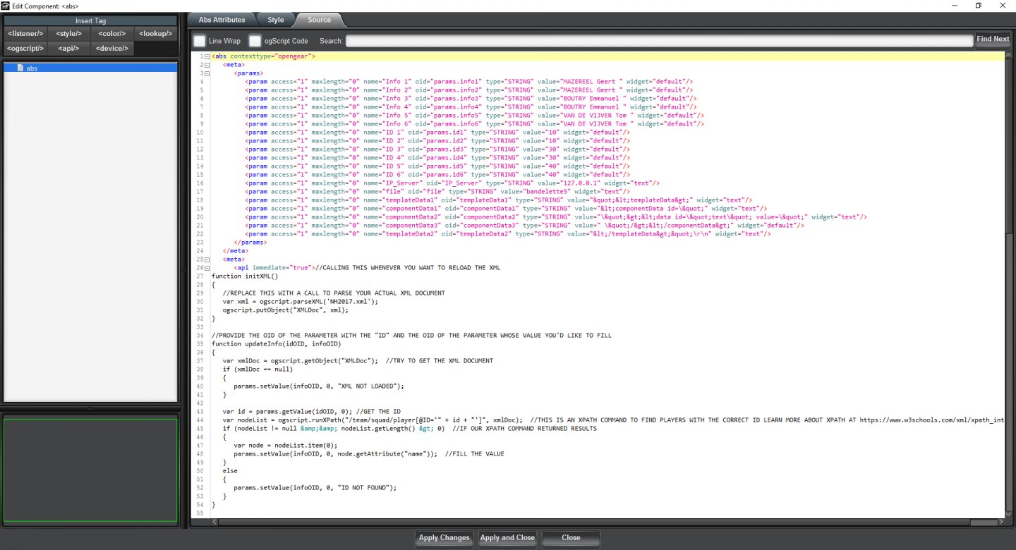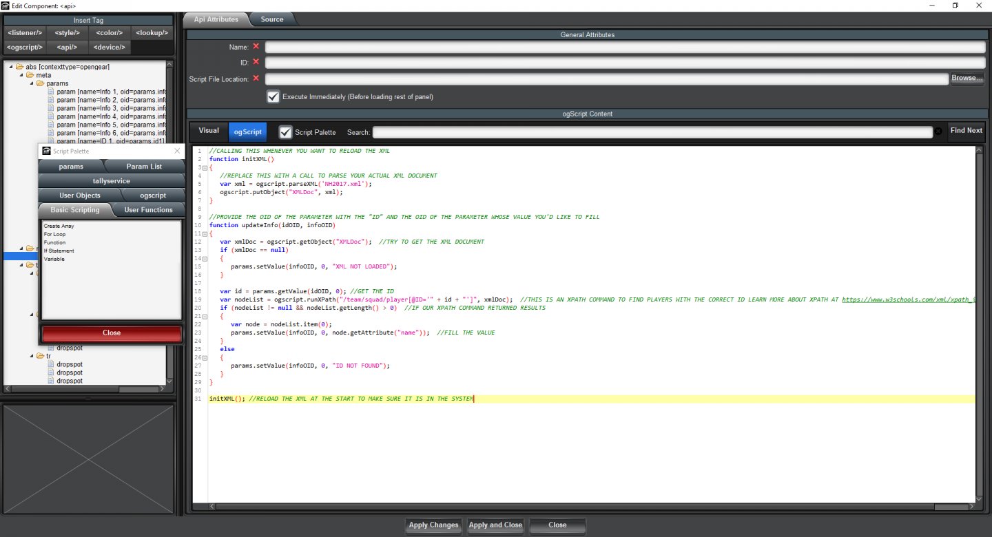 var xmlDoc = ogscript.getObject("XMLDoc"); //TRY TO GET THE XML DOCUMENT