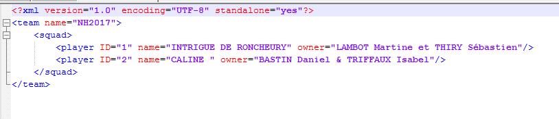 var xml = ogscript.parseXML('<team name="NH2017"><squad><player ID="1" name="PLAYER NAME 1" owner="PLAYER OWNER 1"/><player ID="2" name="PLAYER NAME 2" owner="PLAYER OWNER 2"/></squad></team>');