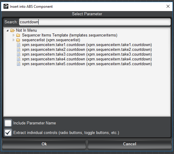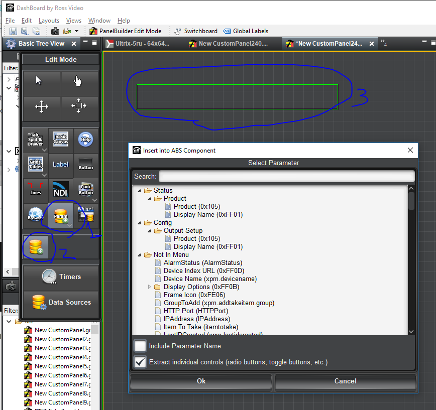 Then in your panel, select the "param" button in panel builder mode. Drag and drop somewhere to drop a parameter, a popup window will appear showing you all the parameters that we received from your XP: