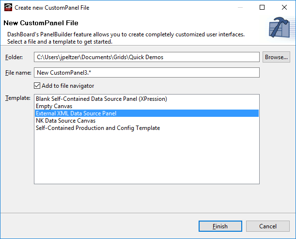 Typically, the information created in the XML file is now stored directly in the DashBoard file.