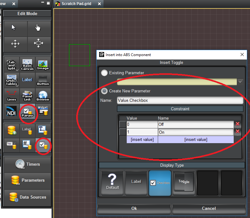 I completly understand your confusion @dbartlett , I had this one as well. As @jamespeltzer mentions above, you can create a toggle button through the use of "button", however, this is a "dumb" button that only changes it's style/appereance, there is actually no true/false, 1/0, on/off value assosiated with it.