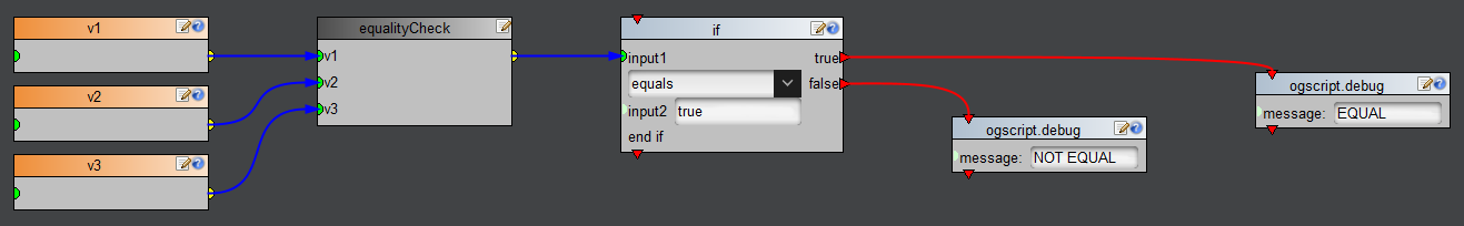 if (equalityCheck(params.getValue('v1', 0), params.getValue('v2', 0), params.getValue('v3', 0)) == "true")
