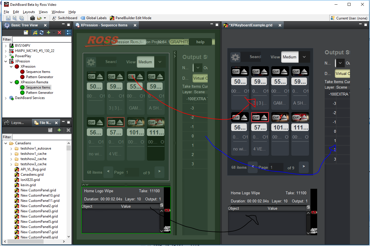 If you click on the buttons, they will cue or take the selected item to air. If you don't want them visible in the panel, you can set their "visible" attribute to "false". They will still trigger via a GPI trigger even if they are invisible.