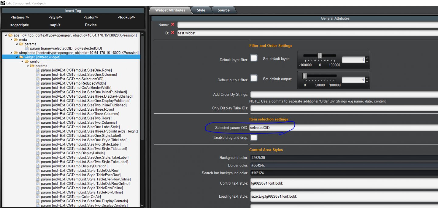 Next, in PanelBuilder Edit Mode, double click on your list widget. You should see its config options. Find the "selected param OID" field, and use "selectedOID" as it's entry.