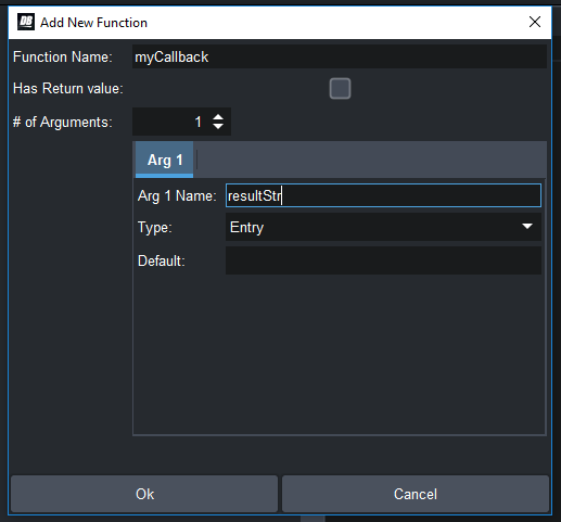 In the popup, it will ask you the name of the function and how many arguments your function has. If it's a callback like the above one, then you could put 1 argument, and give it an appropriate names: