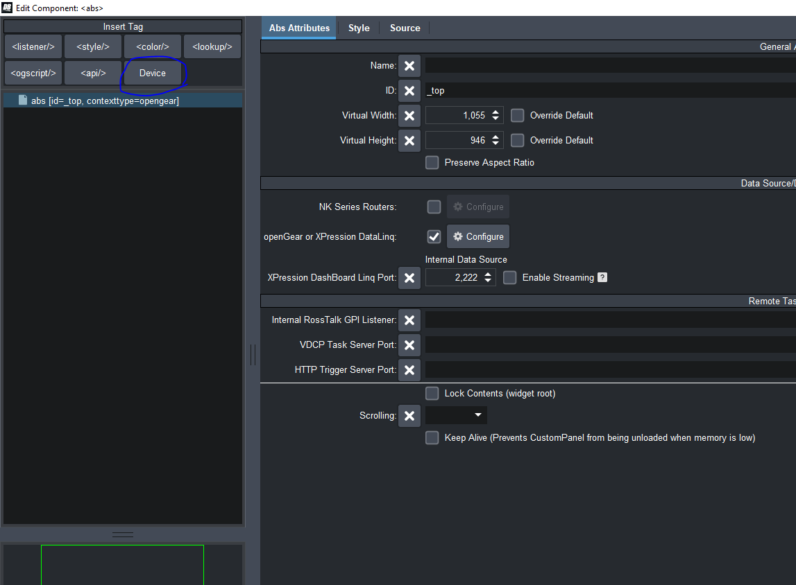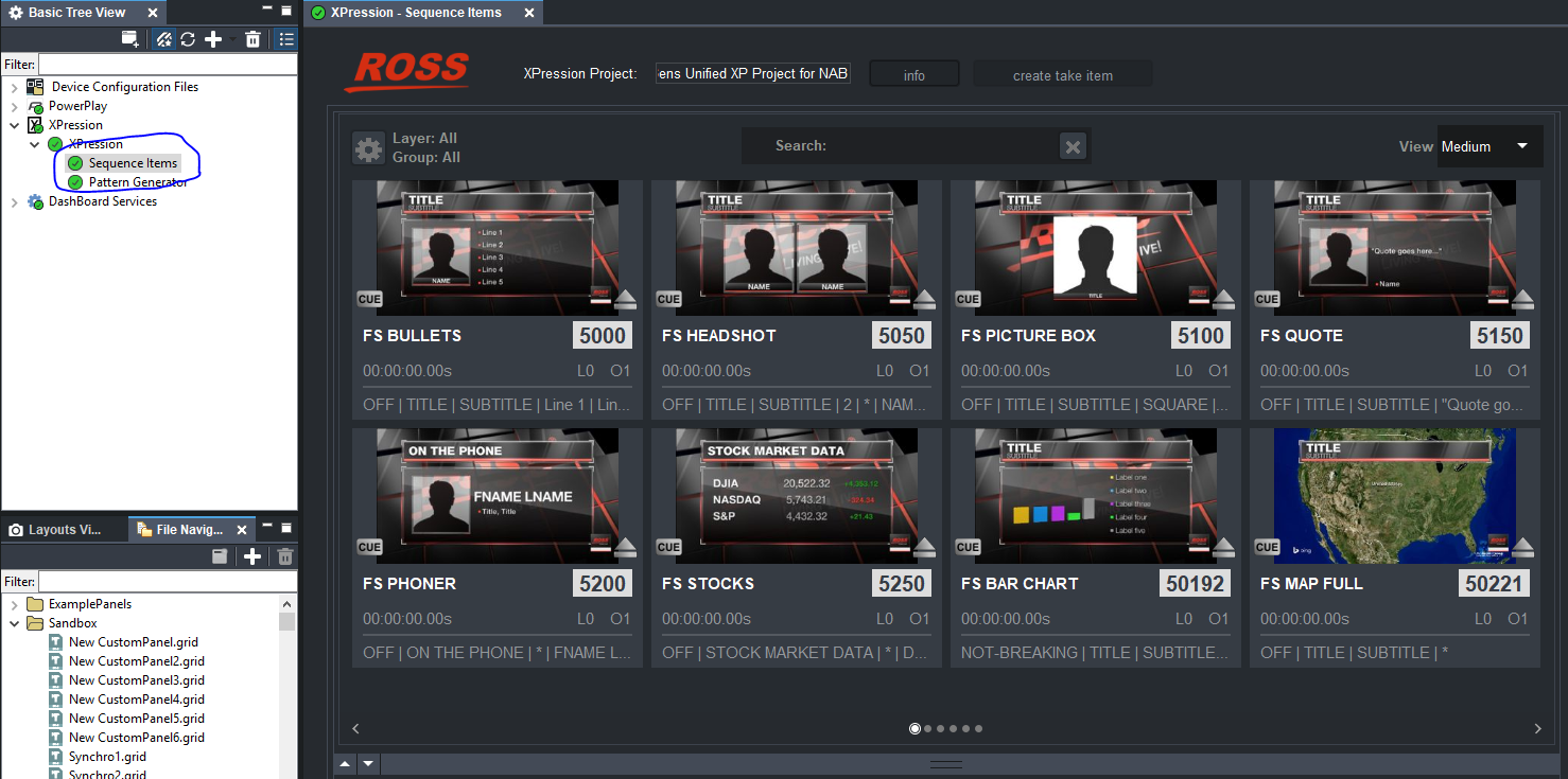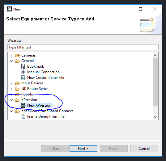 1. Add your XPression to the device tree with the plus in the Basic Tree View. Pick to add an XPression
