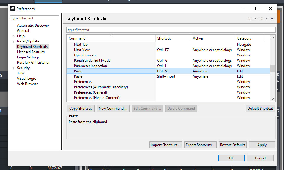 And that works. I can cut out a button with X as well, and paste with V, or copy with C, etc etc...