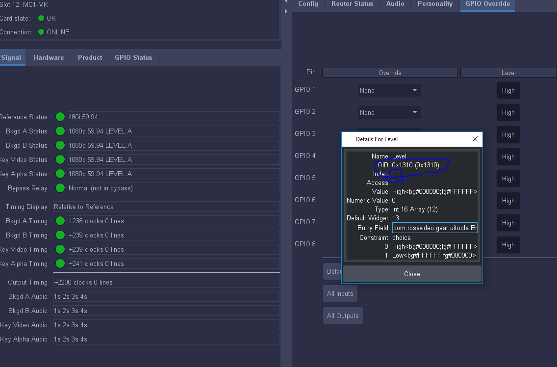 I think you want to drop the "Level" for GPIO 2 into your panel. To know which parameter that is, you can go to the MC1 panel, and do "Ctrl-I" (I for inspector). Then double click on the parameter you want to see.something like this: