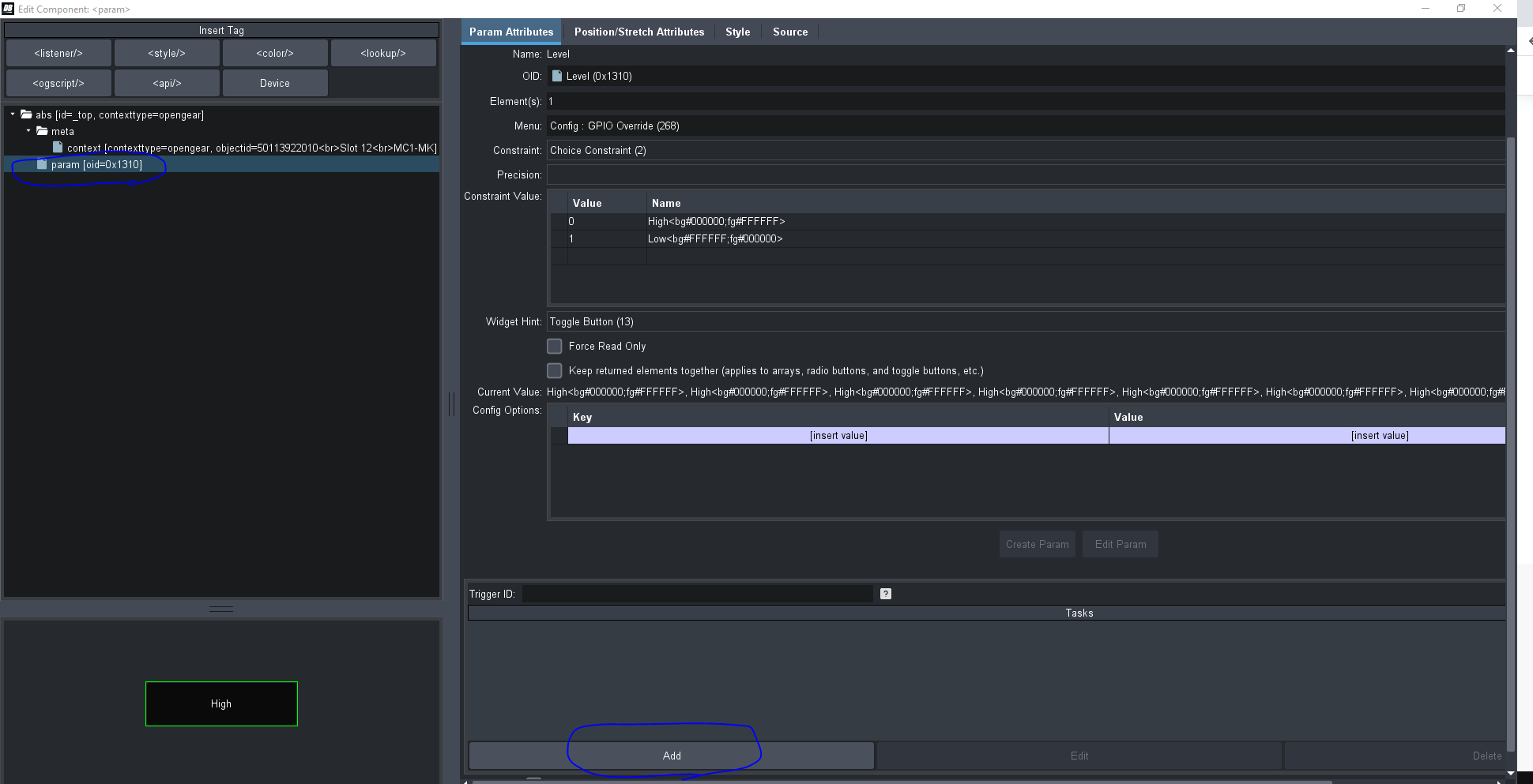 You can now see the parameter's value in your panel. If you want something to happen when that parameter changes, you can add a task to it. Double click on it, and at the bottom, you should be able to add a task.