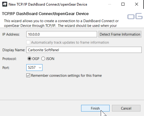 I've been having issues with DashBoard because when I try to add the Carbonite Virtual/Soft Panel on there and I put the 5257 Port, it automatically changes to the 5253 and it gives me the frame.
