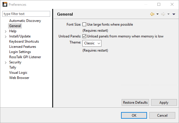However, it is recommended that you use the Aura Theme for DashBoard 9.0 and later, because new DashBoard features and Ross products (like Ultrix and camera panels) only support the Aura theme. You should be able to see the Aura buttons lighten when you hover over them, and when you edit a button the Component Editor dialog will open.