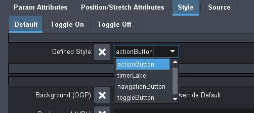 If you select the Style tab, you can choose a Defined Style for your button (or customize either the Toggle On/Off button state), as shown: