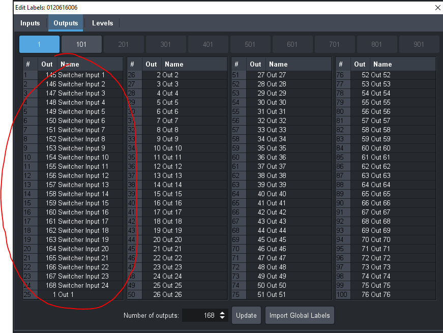 If Switchboard is not showing all of the internal inputs/outputs, please let us know the device model you are working with and what your current Switchboard settings are showing you.