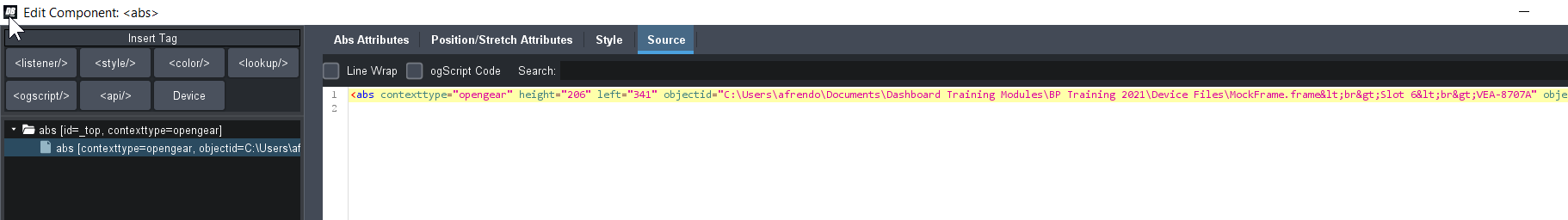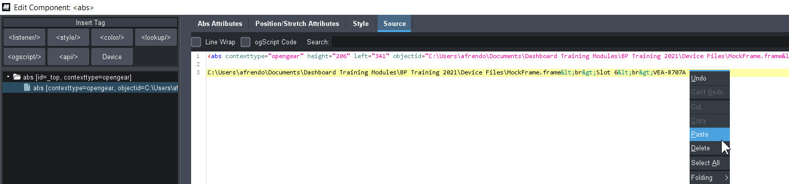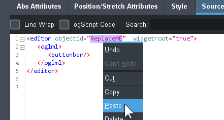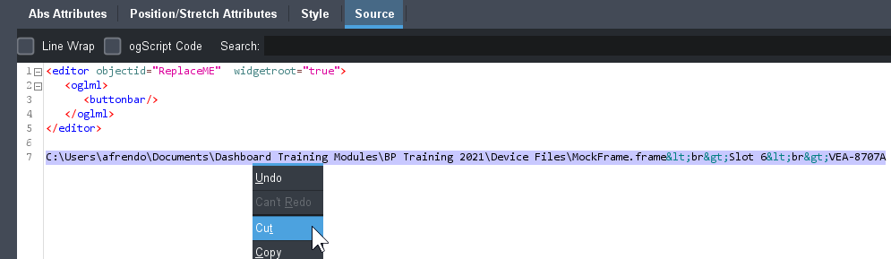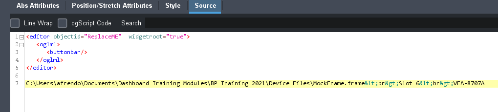 Step 4. Move over to the source tab which will bring you to the source code. We are going to copy the "objectid" and paste it on its own line. (My objectid looks different because I am using an offline file version of an Open Gear frame)