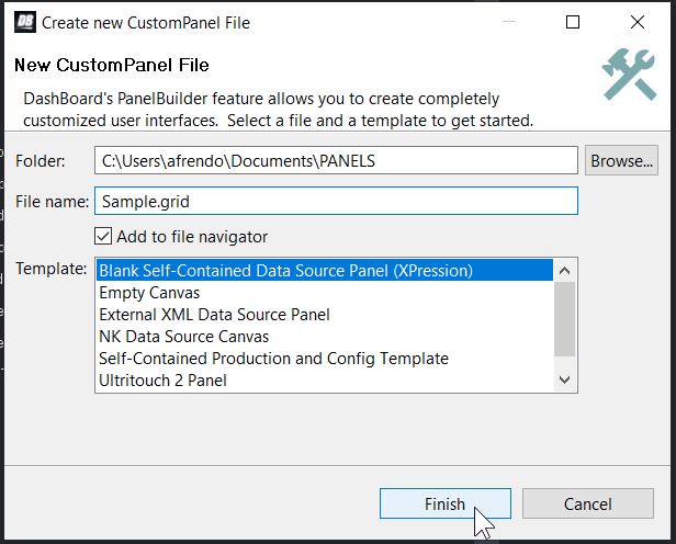 Step 1. Create a custom panel file if you do not already have one. (File/New/New CustomPanel File)
